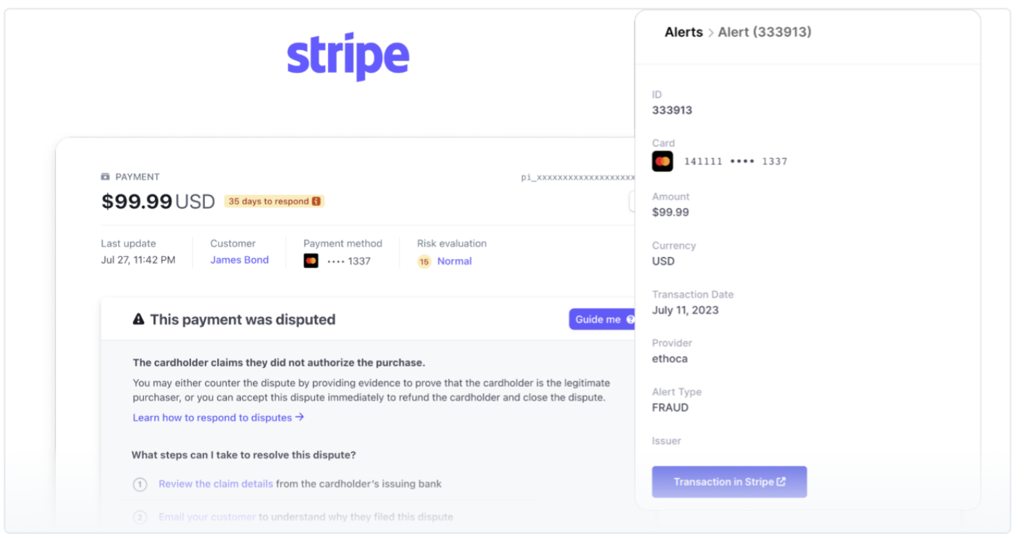 Chargeblast's Stripe app allows merchants to seamlessly avoid chargebacks. By providing a pre-dispute chargeback alert, Chargeblast allows merchants to drive their dispute rate to immaterial levels. Most merchants using Chargeblast experience 95%+ reductions in dispute rates.